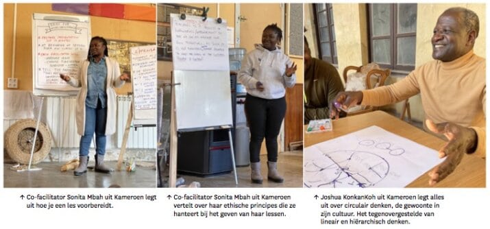 De les van Sonita over dekolonisatie van de geest was zeer relevant. Een voorbeeld: permacultuur kan worden gezien als een vorm van kolonialisme, omdat het kennis heeft ontleend aan inheemse culturen. Nu wordt die kennis in een andere vorm gepresenteerd: de mondelinge tradities zijn geschreven en gekaderd in een permacultuurontwerp. Voor sommige migranten zit de inheemse wijsheid nog steeds diep ingebakken in hun cultuur. Holistisch denken en leven in gemeenschap is hun natuurlijke aard. Er is geen scheiding. De functionele ontwerpbenadering kan voor hen te rigide aanvoelen. Joshua Konkankoh, een stamhoofd uit Kameroen legde mij uit hoe design ook gezien kan worden als een manier van de mens om de natuur te beheersen. Zo’n ontwerp mist bezieling.